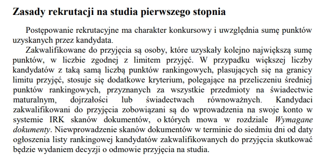 Rekrutacja na studia pierwszego stopnia dotyczy kierunków: